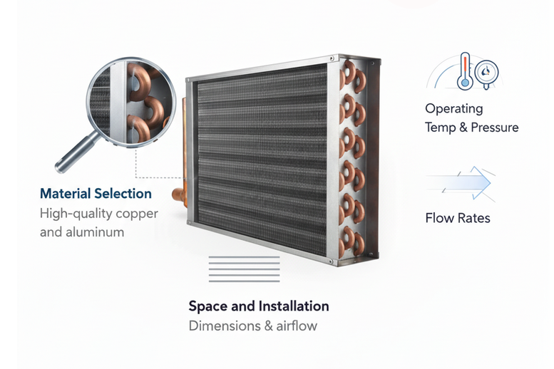 When selecting an air to water heat exchanger, several technical factors should be evaluated to ensure proper performance: