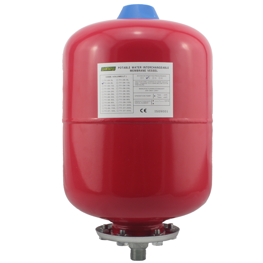 Expansion tanks are a vital part of the water heating system. Water pressure, caused by thermal expansion, is taken care of by the expansion tank, which works as a pressure relief unit. Without expansion tanks, the pipes, pumps, and other components of the heating system could burst. The rubber diaphragm of an expansion tank helps keep unwanted oxygen out of the system, resulting in less system corrosion over time. This product should be installed supply side and/or higher point of return side. Our Expansion Tanks can be used for commercial and residential applications, as well as water booster systems, solar water applications, and potable water storage systems.