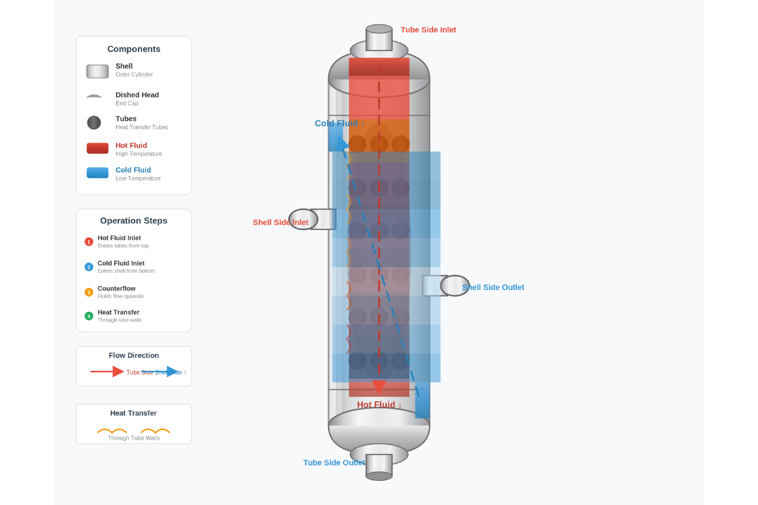 Most shell and tube heat exchangers use a counterflow design, where the hot and cold fluids move in opposite directions. This arrangement improves heat transfer efficiency and allows faster temperature stabilization.