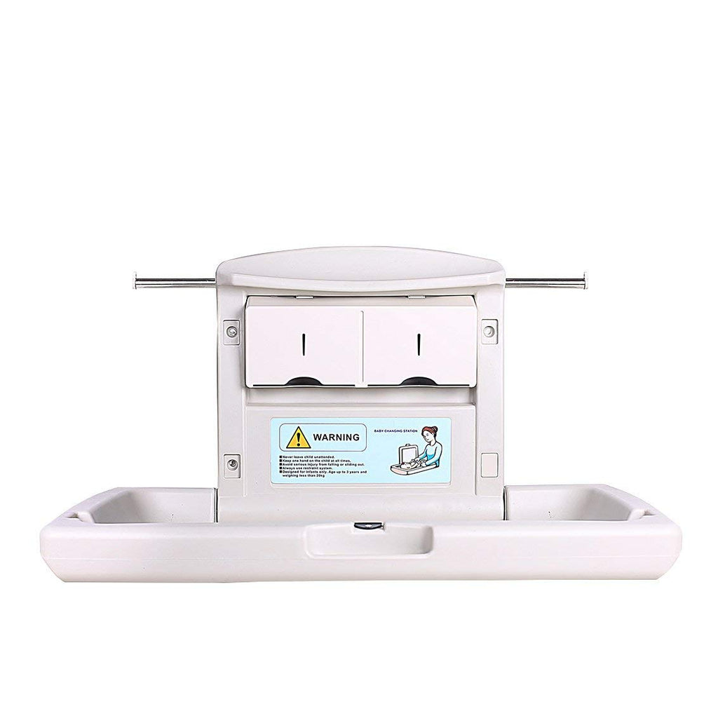 Our diaper changing stations are made with high-quality antibacterial HDPE materials to prevent cross-contamination, stains, and odor. Once mounted to the wall via mounting bolts (included), this unit becomes a reliable and safe place to change a baby's clothes or diaper. Unlike other designs, our baby change station has a fold down drawer onto a vertical plate. A safety belt keeps the baby in place during the changing and railing further ensures the security of the baby. This baby changing station can easily be installed in a home or commercial setting. The sides of the product are rounded to prevent potential injury, and the product is EN-1221-1 tested & approved. Designed to hold up to 20kg/44lb and is meant for children up to 3 years old.